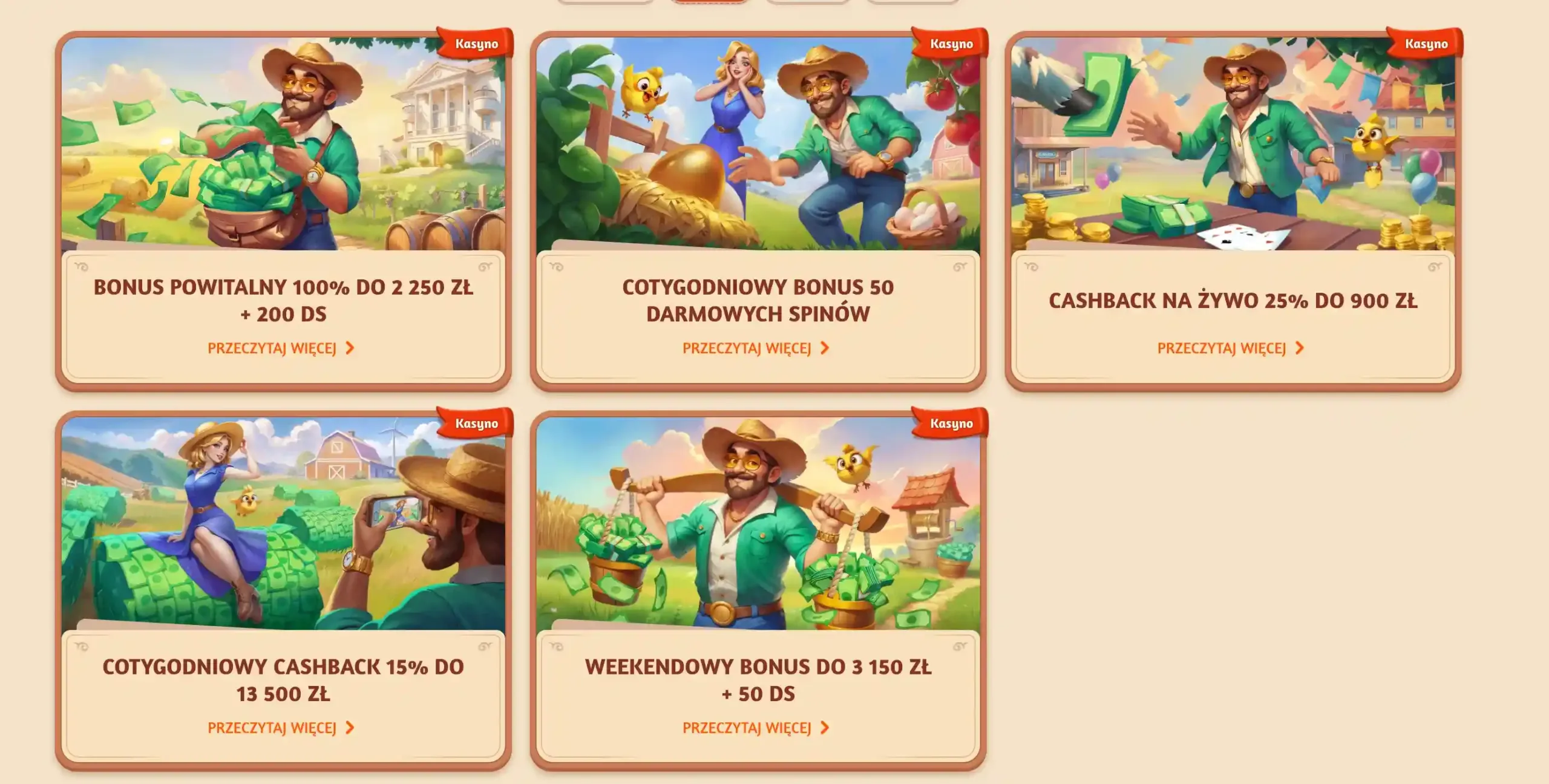 Dokonując depozytu na 90 złotych między piątkiem a niedzielą otrzymasz 50% doładowanie swojej wpłaty. Jeżeli zdecydujesz się zasilić konto kwotą przynajmniej 225 złotych, dodatkowo otrzymasz 50 free spinów. Wager oraz limit czasu tej oferty są takie same, jak przy wcześniejszych bonusach.