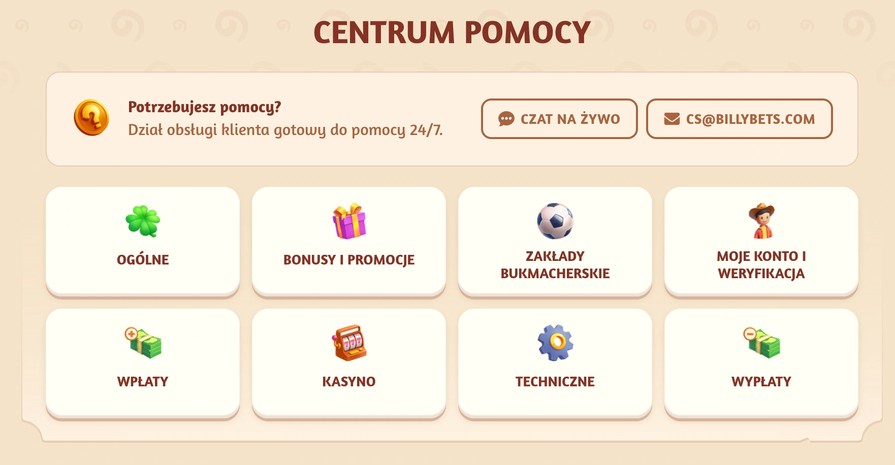 - Obsługa klienta. Zadałem kilka pytań, które może mieć nowy gracz Billybets casino PL.