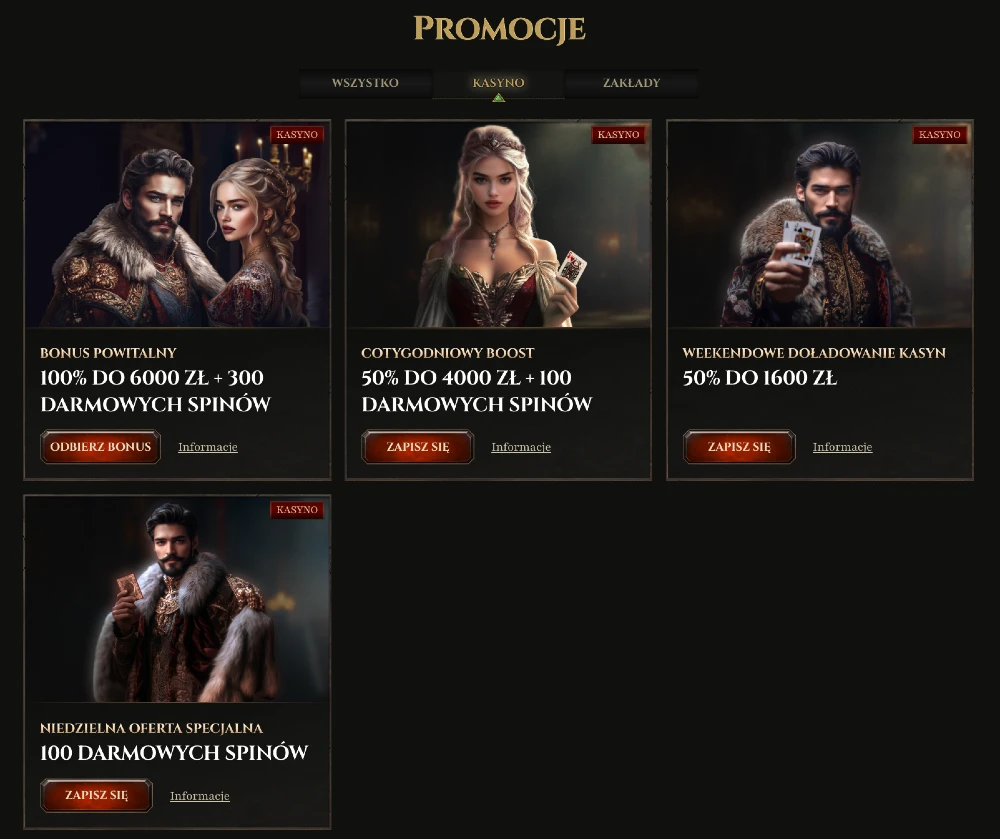 Po przejściu przez Kyngs Casino logowanie paltforma nie zatrzymuje się na samym starcie. Po aktywacji pakietu powitalnego gracz ma dostęp do szerokiego wachlarza promocji – zarówno w kasynie, jak i sekcji zakładów sportowych. Warunki? Proste, jasne i spójne. Poniżej konkretna rozpiska aktualnych ofert: