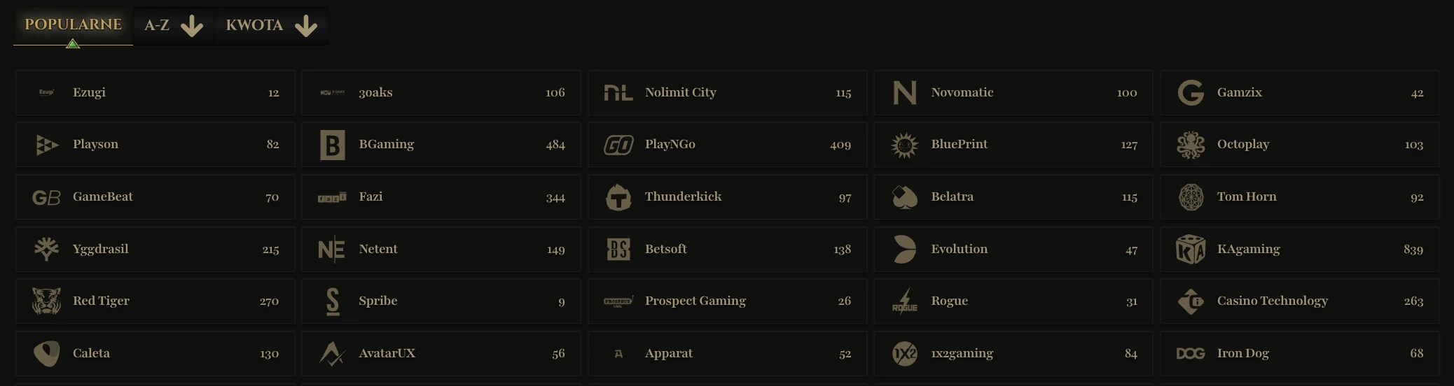 Kyngs Casino współpracuje z czołówką branży. Na liście znajdziesz m.in. Pragmatic Play, NetEnt, Microgaming, Betsoft, Relax Gaming czy Play’n GO. Tylko że to nie wszystko, bo jest też miejsce na bardziej niszowych twórców, takich jak Nolimit City czy Hacksaw Gaming, które wprowadzają świeżość do biblioteki gier. Sloty, gry stołowe i kasyno na żywo – wszystko pochodzi od licencjonowanych dostawców.