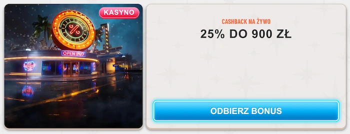 Alternatywą dla tego cashbacku, z której korzystać można także o tydzień, jest cashback na sloty na żywo. Z tej promocji skorzysta każdy gracz kasyna, a zwrot wynosi 25% przegranych zakładów ze wszystkich slotów live.