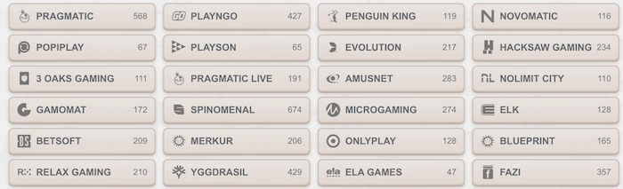 Dostawcy oprogramowania | Novomatic, Play’n GO, Pragmatic Play, ELK, Microgaming, Hacksaw Gaming |
