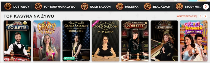 Gry na żywo | Sloty z krupierami, gry show | 500+ | Crazy Time, Gold Saloon Blackjack, Crazy Pachinko Live |