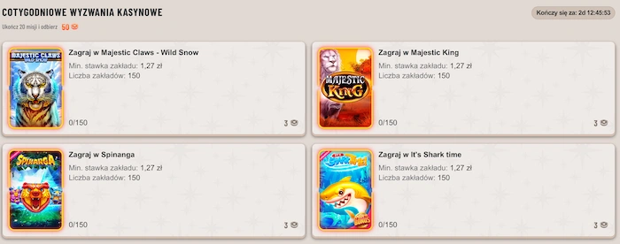 W kasynie dostępne są też specjalne wzywania, związane z graniem na wskazanych automatach czy dokonywaniem wpłat na stronę. Wykonując je, można otrzymywać specjalne punkty, czyli wewnętrzną walutę kasyna.