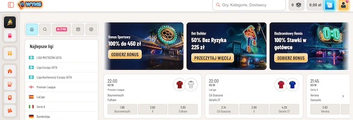 Strona oferuje także dodatkowe bonusy na zakłady sportowe, zatem preferując ten typ zabawy, nie stracisz dostępu do dodatkowych środków czy np. freebetów.