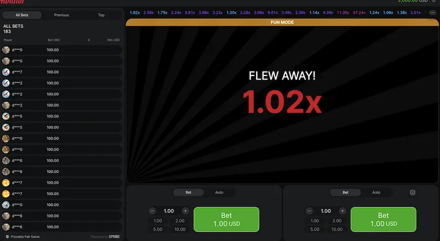 Maks. zakład | 100 USD (400 PLN) | Funkcje | Auto-zakłady, auto-wypłaty, multiplayer, czat, darmowe zakłady, funkcja deszczu |