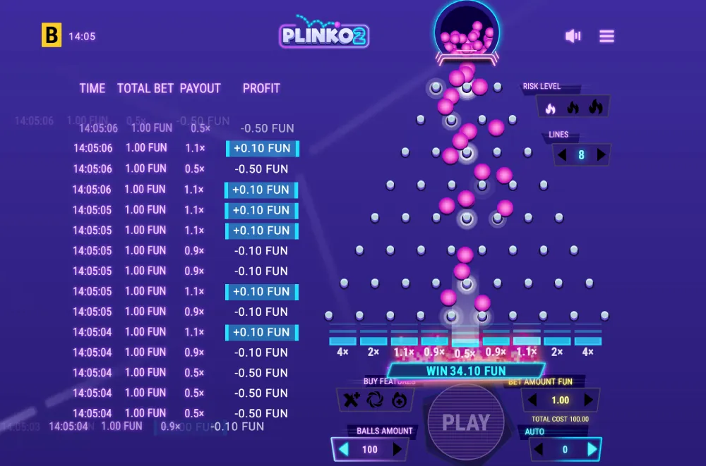 Plinko 2 to gra online która wyróżnia się unikalnymi funkcjami, dającymi graczom ogromną kontrolę nad rozgrywką. Przetestowaliśmy każdy aspekt gry, by pokazać, dlaczego gra jest tak wysoko oceniana: